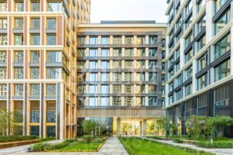 Из панорамных окон открываются виды на Триумф-Палас и тихий внутренний двор комплекса.