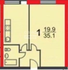 Продаётся однокомнатная квартира площадью 35,1 кв.м, на 2 этаже 12 этажного блочного дома.