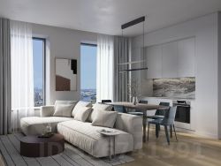 Продаётся квартира-студия номер 64 общей площадью 34.3 кв.м. на 7-м этаже 27 этажного здания. Отделка Whitebox.