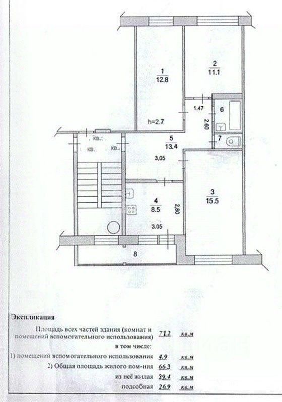 Все комнаты изолированы (15.5, 12.8 и 11.1 м²).