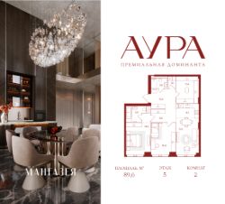 2-комнатная квартира площадью 89,6 м2.