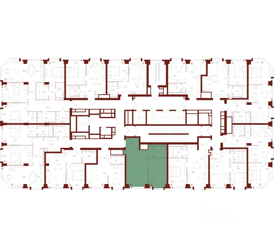 Более 40 планировок: от уютных студий до просторных семейных лотов. Всего 916 квартир площадью от 28,1 до 148,8 м². Высота потолков от 3,16 до 6,2 м.