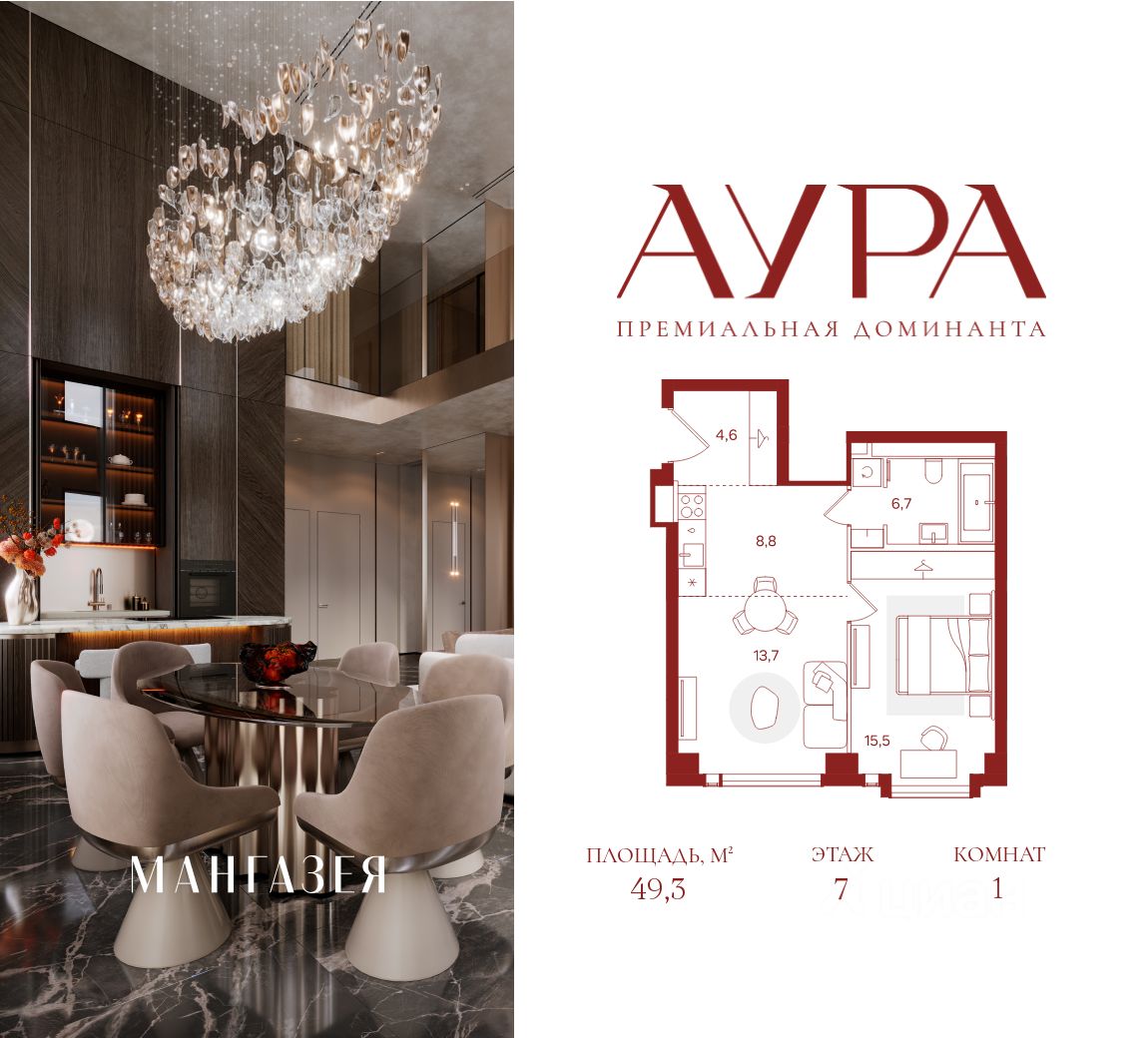 АУРА новая премиальная доминанта Москвы в 10 минутах от Садового кольца. Проект состоит из 42-этажной Бронзовой башни и 41-этажной Серебряной. Рядом набережная Москвы-реки, Даниловский рынок, музеи и галереи, престижные школы и вузы.