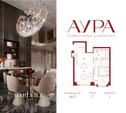 1-комнатная квартира площадью 49,3 м2.