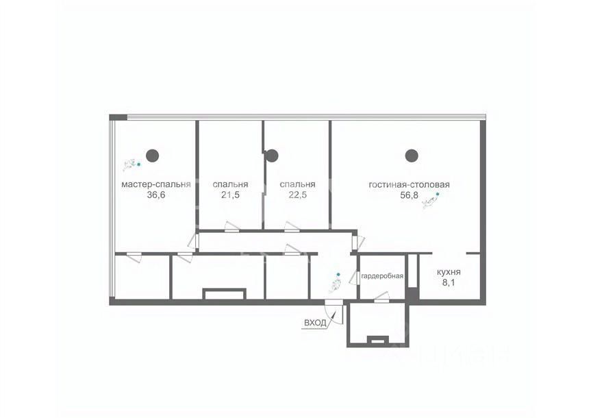 Планировка: гостиная-столовая с зоной кухни, три спальни, одна из которых со своей гардеробной и санузлом, просторная гардеробная, совмещенный санузел, постирочная, прихожая.