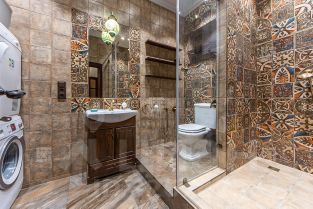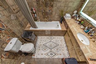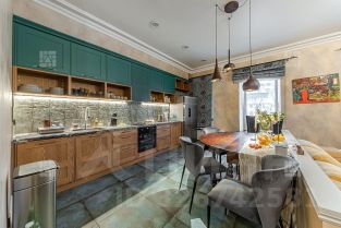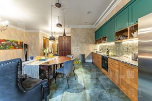 Лот: 9162. ПРЯМОЙ ПРЕДСТАВИТЕЛЬ СОБСТВЕННИКА. Продается просторная четырёхкомнатная квартира с уникальной дизайнерской отделкой на Трехпрудном переулке, дом 11/13, строение 2. Дом расположен в историческом центре Москвы в пешей доступности от Патриарших Прудов. Дом имеет свой закрытый двор с парковкой, детской и спортивной площадками, что является редкостью для этого района. Парадный подъезд с консьержем. Отделка квартиры выполнена в стиле, сочетающем элегантность и функциональность. В интерьере использованы качественные материалы, продуманные решения и современное оборудование, создающее атмосферу комфорта и уюта.