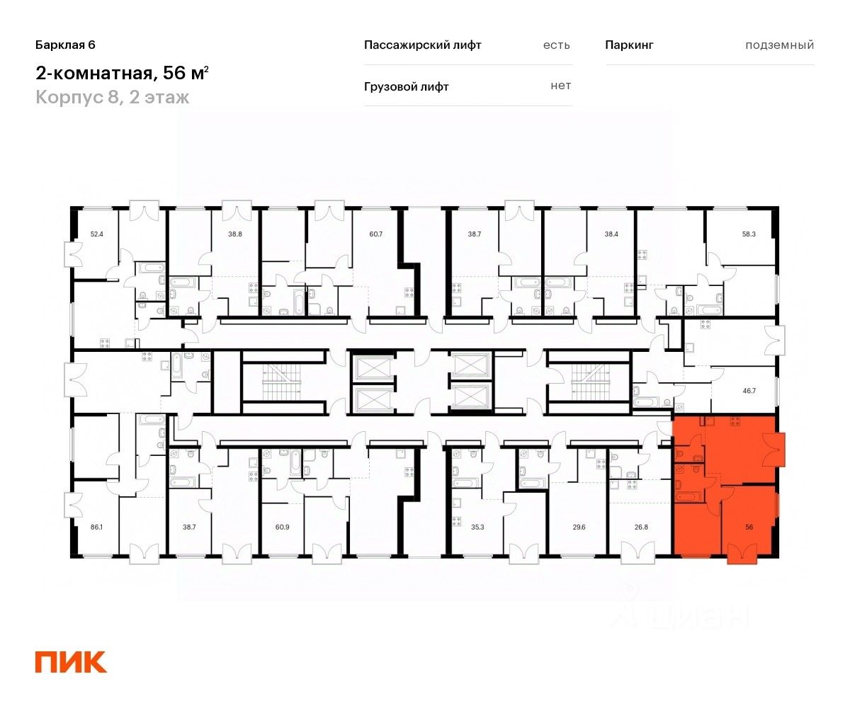 Продаётся 2-комн. квартира площадью 56 кв.м на 2 этаже 32 этажного дома (Корпус 8, Секция 3) проекта ПИК Барклая 6. Светлый просторный подъезд на уровне земли, функциональная планировка, большие окна, предчистовая отделка.