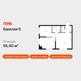 Продаётся 2-комн. квартира площадью 56,4 кв.м на 4 этаже 32 этажного дома (Корпус 6, Секция 1) проекта ПИК Барклая 6. Светлый просторный подъезд на уровне земли, функциональная планировка, большие окна, предчистовая отделка.