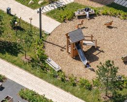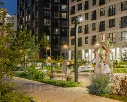В уютном проекте "Барклая 6" восемь жилых домов с переменной этажностью — 12, 24 и 32 этажа, подземный паркинг, детский сад на 125 малышей и начальная школа на 225 детей. Внутри квартала появится приватный парк для жителей, где можно гулять, играть на детских и спортивных площадках. На территории парка будет Вайфай, в лавочках предусмотрены разъёмы для зарядок.