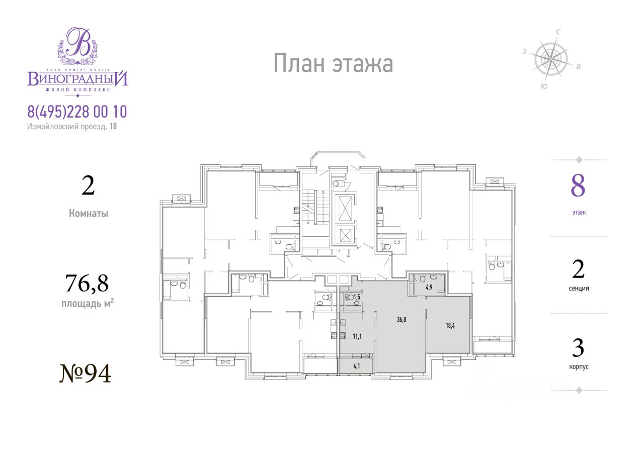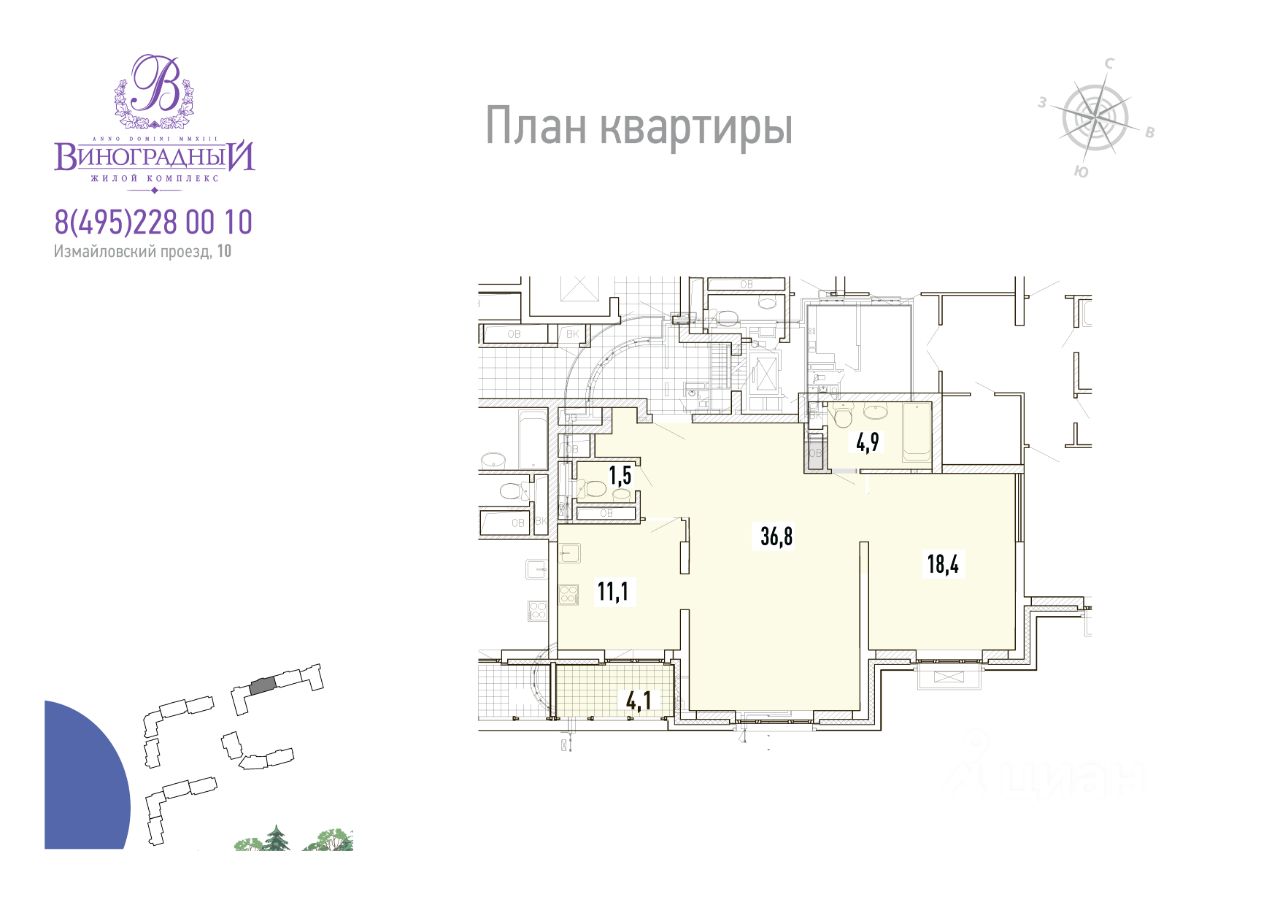 В ЖК премиум-класса "Виноградный" в продаже комфортная 2-комнатная квартира на 8 этаже 18-этажного дома, площадью 76,8 м2 с лоджией и балконом, обладает идеальным сочетанием функциональности и элегантности. Большую часть дня квартира будет наполнена естественным освещением, так как окна выходят на южную сторону. Просторные кухня, гостиная и спальня создадут прекрасные условия для комфортной жизни. Лоджия с панорамными окнами и французский балкон спальни позволят наслаждаться панорамными видами на Москву и на уютный благоустроенный двор.