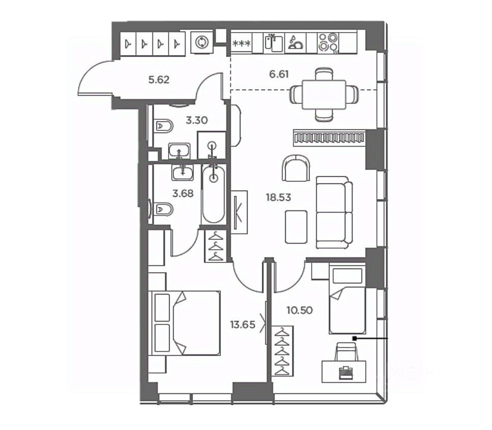 Планировка: Свободная, современная евро-планировка. Зонирование позволяет комфортно разместить и гостиную с кухней-столовой, и приватные спальные зоны. Увеличенные окна наполняют пространство светом.