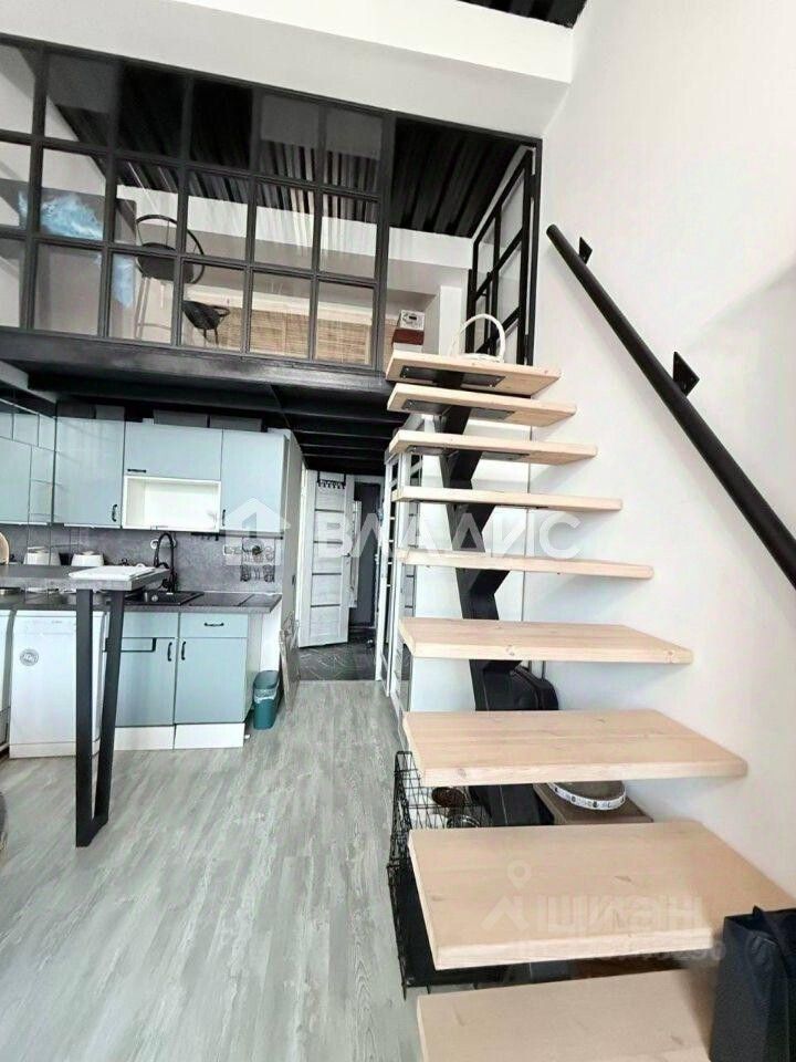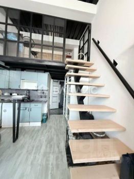 Эта студия с дизайнерским ремонтом, очень тёплая и уютная — отличное решение для молодых специалистов или студентов, а так же для молодой семьи. Высота потолков 4,1 м позволяет организовать пространство максимально комфортно, А спальня на втором этаже просторная и ИЗОЛИРОВАННАЯ, посмотрите сами на сколько там уютно, а так же второй этаж увеличен по полу под удобную гардеробную 3м в длину!