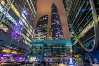 "Башня Федерация"- два небоскрёба в Москва-Сити: 97-эт. "Восток" и 63-эт."Запад". Смещённые кубы фасадов и стеклянная графика создают футуристический силуэт делового центра.
