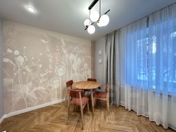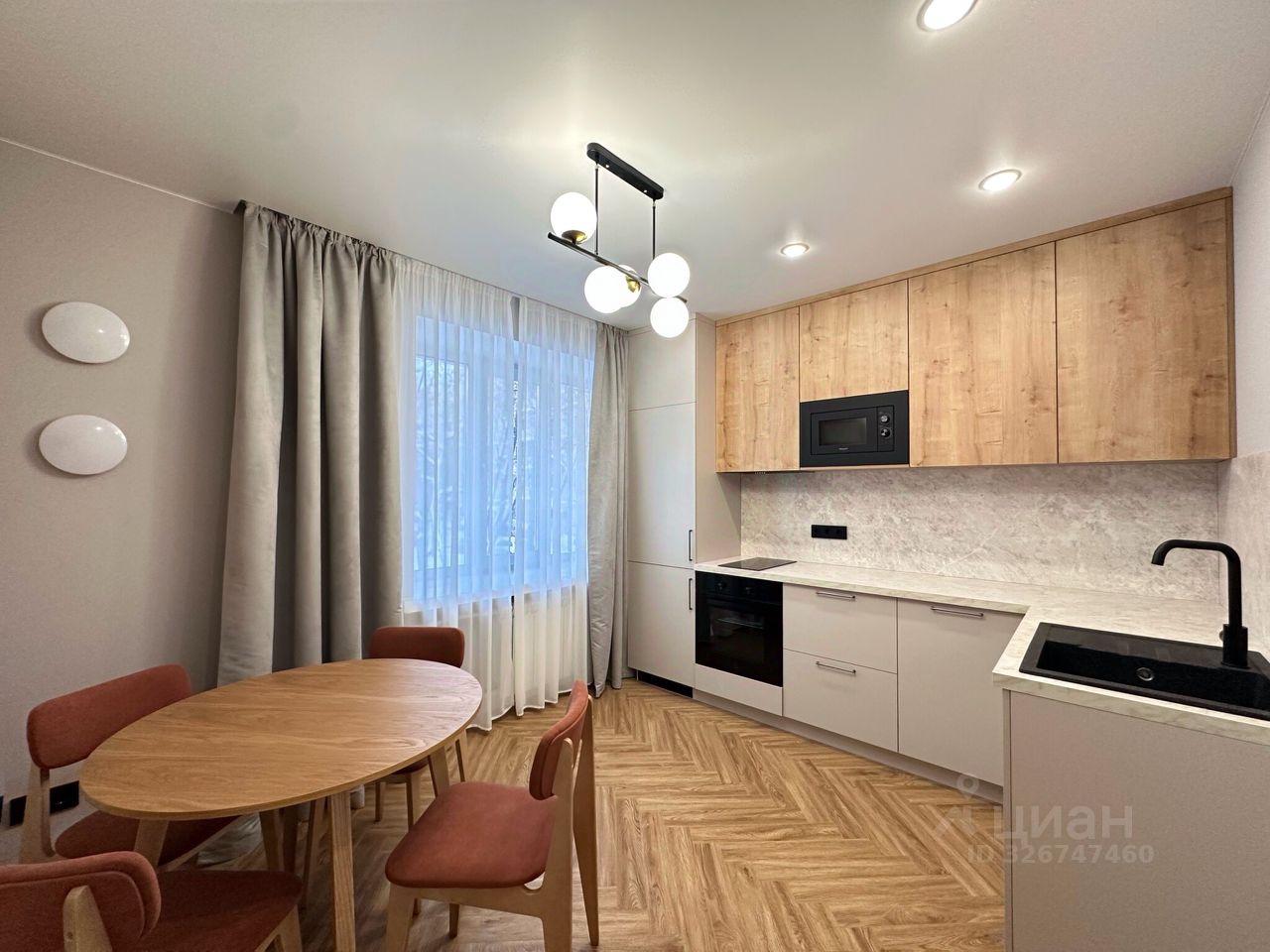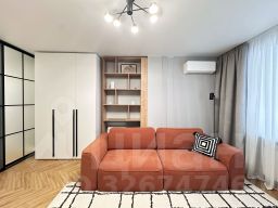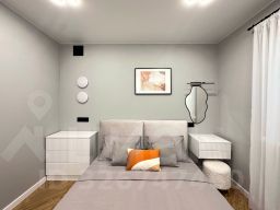 О КВАРТИРЕУютная 1-комнатная квартира 46 кв.м. Площадь комнаты 26,4 кв.м, площадь кухни 11,2 кв.м. Ремонт в квартире выполнен в соответствии с дизайн-проектом и продуман до мелочей. Жилая комната разделена на две зоны раздвижными панелями, что создаёт место для комфортного сна и отдельное пространство для проведения досуга. Интерьер выполнен в современном стиле и обеспечивает ощущение уюта и домашнего комфорта. Квартира полностью оснащена всей необходимой мебелью и бытовой техникой: кондиционер, водонагреватель, посудомоечная, стиральная/сушильная машина, кухонная техника, а также укомплектована системами хранения вещей.