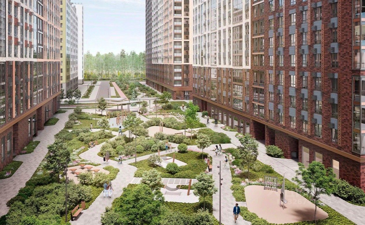 Собственная закрытая территория, зеленый освещенный бульвар со спортивными и игровыми площадками, зоны отдыха, система велодорожек, маленькая городская площадь, кафе, пекарни и кафе. Двор без машин, для авто строится многоэтажная парковка. Изюминка территории - фруктовые деревья во дворах и городские сады. Жилой комплекс, где есть все необходимое для современного человека.