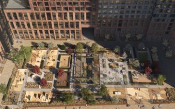 Внутренний двор комплекса - это отдельный мир, закрытый от машин и городского шума. Ландшафтный дизайн отсылает к регулярным дворцовым садам: геометрия аллей, зелёные "кабинеты", цветники и камерные зоны отдыха создают разные сценарии для повседневной жизни. Здесь органично соседствуют детские игровые пространства, плейхаб, спортивные зоны и тихие места для отдыха.
