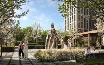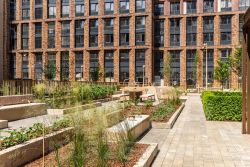 • Закрытый двор без машин, вдохновлённый эстетикой дворцовых садов;