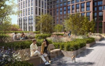 Внутренний двор комплекса - это отдельный мир, закрытый от машин и городского шума. Ландшафтный дизайн отсылает к регулярным дворцовым садам: геометрия аллей, зелёные "кабинеты", цветники и камерные зоны отдыха создают разные сценарии для повседневной жизни. Здесь органично соседствуют детские игровые пространства, плейхаб, спортивные зоны и тихие места для отдыха.