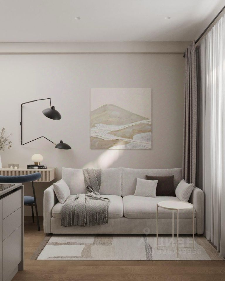 Дизайнерская отделка выполнена в современном стиле, студия полностью меблирована и оснащена бытовой техникой "под ключ". Полностью готова к заселению.