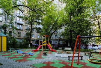 Из окон открывается вид на благоустроенный внутренний двор с детской площадкой.