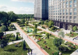 —Территория вокруг домов свободна от автомобилей и закрыта для посторонних, предлагает прогулочные аллеи, детские и спортивные площадки, а также комплексное озеленение.