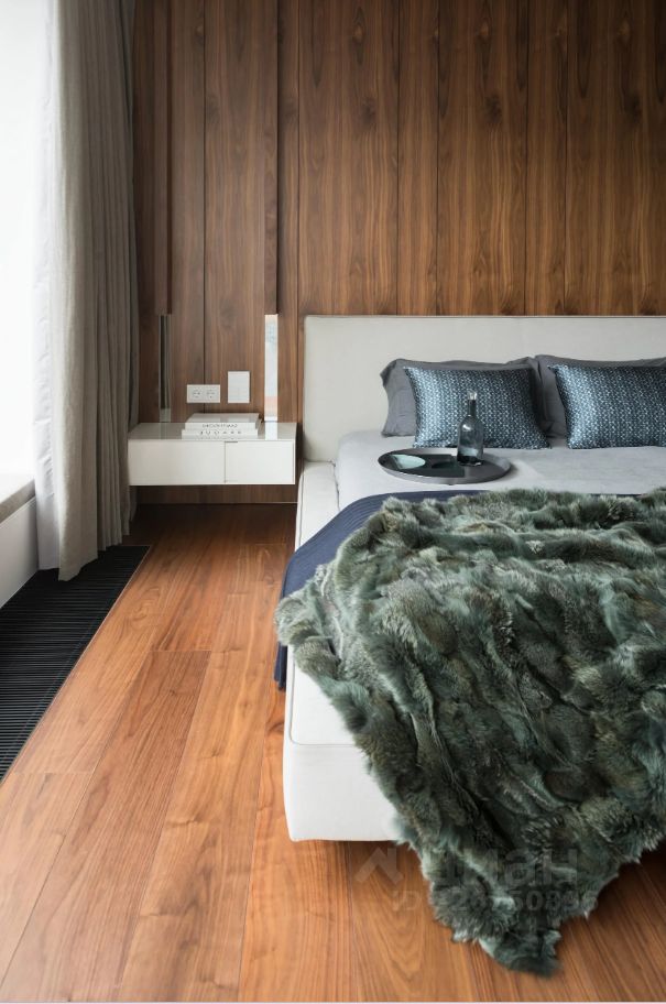 Планировка: кухня-гостиная, спальня, гардеробная, совмещенный с/у.