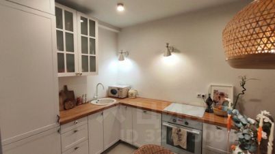 Продается стильная Евродвушка (кухня-гостиная плюс спальня). Вся обстановка остается как есть - готовый и обжитой вариант со всей необходимой для комфортнейшего проживания мебелью и бытовой техникой, практически без естесственного износа. Нетронутые стены в квартире, без единой дырки. Кухонная столешница из натурального дерева (брус бука). Большие окна с низкими подоконниками, оконные рамы с функцией проветривания. 6 точек освещения на кухне (4 на потолке + 2 бра) Датчики дыма в квартире. Датчики освещения в подъезде.