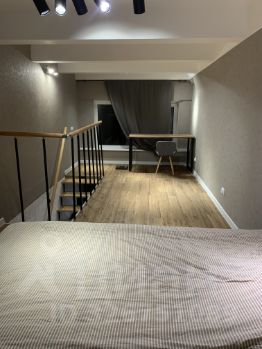 Апартаменты с дизайнерским ремонтом, продуманным до мелочей. Совмещенный санузел оснащён современной сантехникой, а окна выходят во двор, поэтому в квартире всегда тихо и спокойно. Просторная планировка позволяет разместить всю необходимую мебель и технику с комфортом.