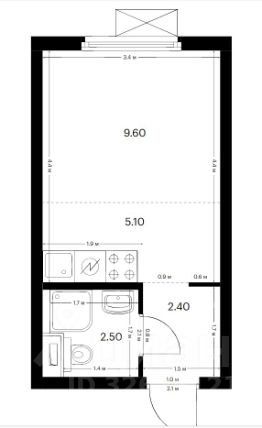 9,6 м²