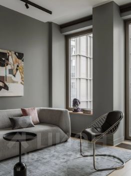 Планировка квартиры: кухня-гостиная, спальня, санузел, гардеробная.