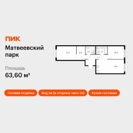 Продаётся 2-комн. квартира площадью 63,6 кв.м на 2 этаже 17 этажного дома (Корпус 1.4, Секция 4) проекта ПИК Матвеевский парк. Светлый просторный подъезд на уровне земли, функциональная планировка, большие окна, c отделкой.