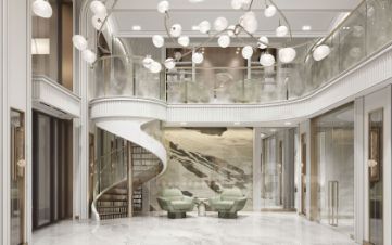 "Обыденский N1" - красивый, изысканный дом в стиле неоклассики с просторным двухуровневым, светлым, шикарным лобби с потолками 6,5 м и дорогой отделкой.