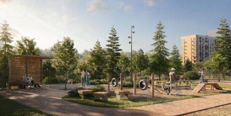 Дворы-парки будут радовать жителей цветением и зеленью: здесь высадят липы, сосны, ели, клены и сирень. Плэйхаб станет местом встреч всех любителей активного отдыха: застройщик оборудует зоны тренажеров и воркаута, площадки для игр в настольный теннис, мяч, шахматы. Также появятся современные игровые площадки для детей.