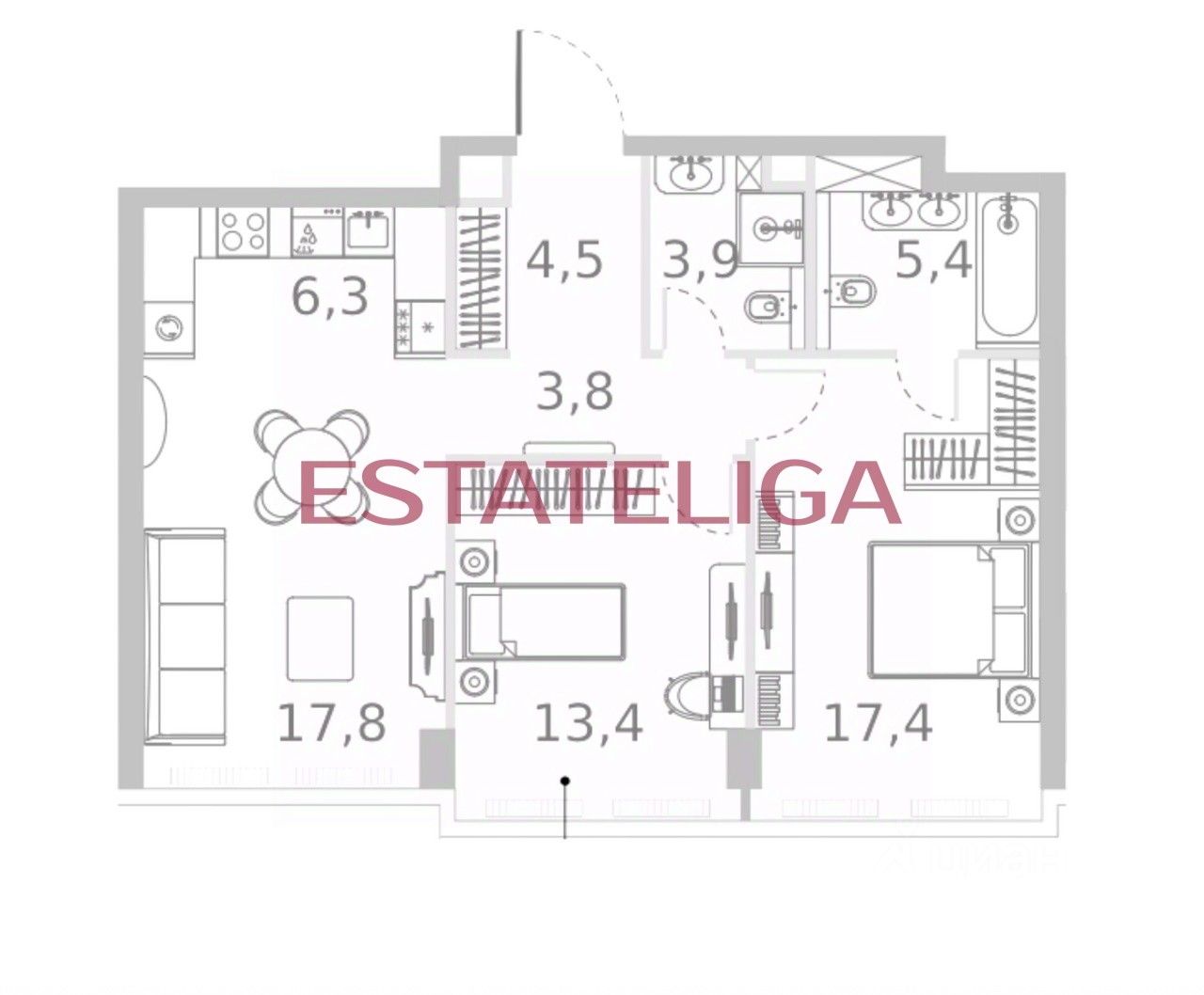 Id 60683. Продается евро трёхкомнатная квартира в жилом комплексе премиум-класса River Park Кутузовский в Emerald Tower с отделкой White box.
