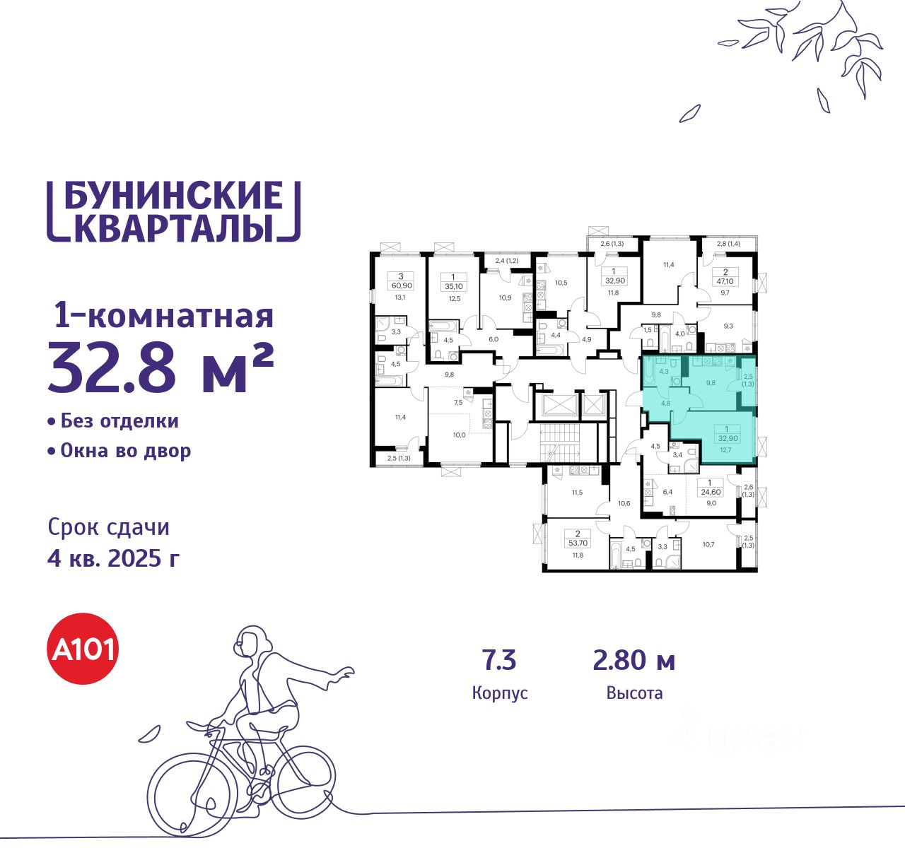 Продается однокомнатная квартира 735 в новостройке ЖК "Бунинские кварталы" по адресу Москва, ТиНАО, Новомосковский АО, Сосенское С/П, жилой комплекс Бунинские Кварталы, 7.3, район Коммунарка, Новомосковский административный округ, Москва. Общая площадь квартиры - 32.80 кв. м., этаж 12 из 17, секция 10. Тип проекта, по которому построен дом - монолит, компания-застройщик - ООО "А101". Стоимость квартиры - 12808728 Р.