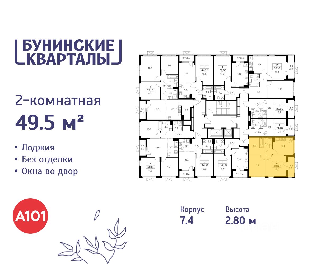 Продается двухкомнатная квартира 1209 в новостройке ЖК "Бунинские кварталы" по адресу Москва, ТиНАО, Новомосковский АО, Сосенское С/П, жилой комплекс Бунинские Кварталы, 7.4, район Коммунарка, Новомосковский административный округ, Москва. Общая площадь квартиры - 49.50 кв. м., этаж 18 из 19, секция 16. Тип проекта, по которому построен дом - монолит, компания-застройщик - ООО "А101". Стоимость квартиры - 19587150 Р.