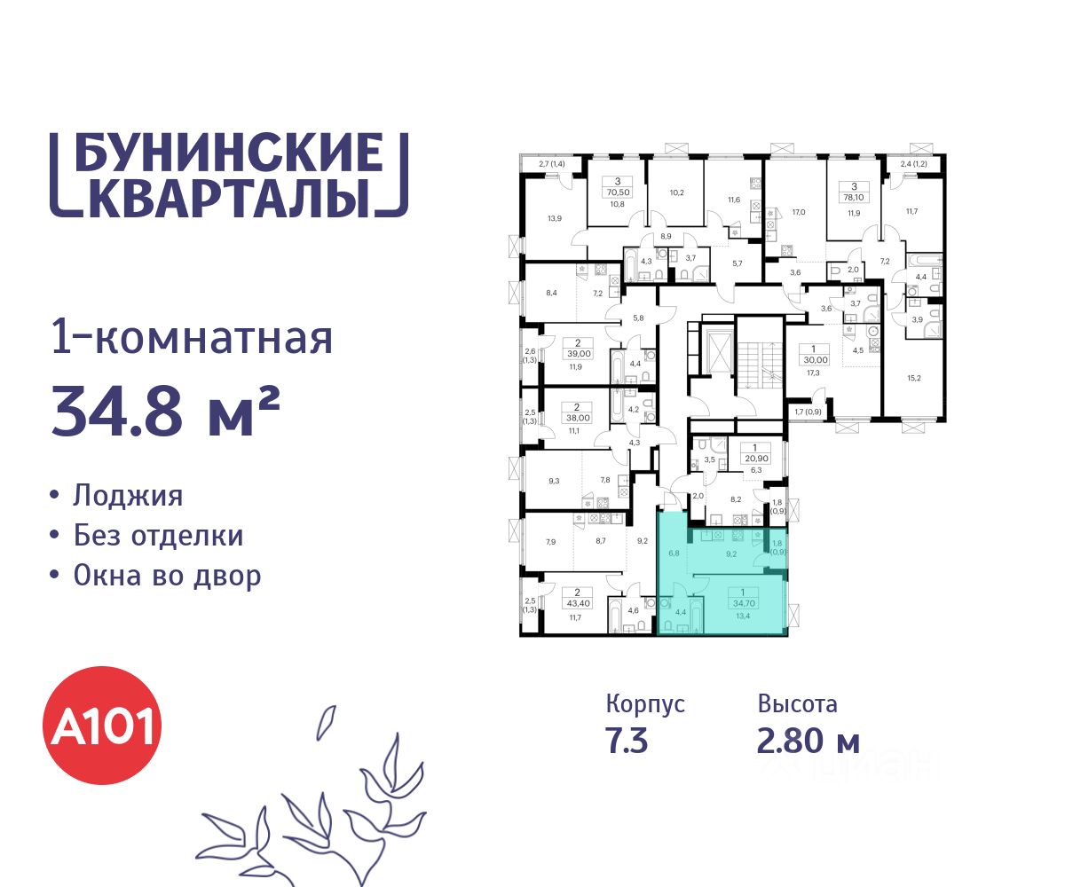 Продается однокомнатная квартира 902 в новостройке ЖК "Бунинские кварталы" по адресу Москва, ТиНАО, Новомосковский АО, Сосенское С/П, жилой комплекс Бунинские Кварталы, 7.3, район Коммунарка, Новомосковский административный округ, Москва. Общая площадь квартиры - 34.80 кв. м., этаж 8 из 9, секция 12. Тип проекта, по которому построен дом - монолит, компания-застройщик - ООО "А101". Стоимость квартиры - 13112292 Р.