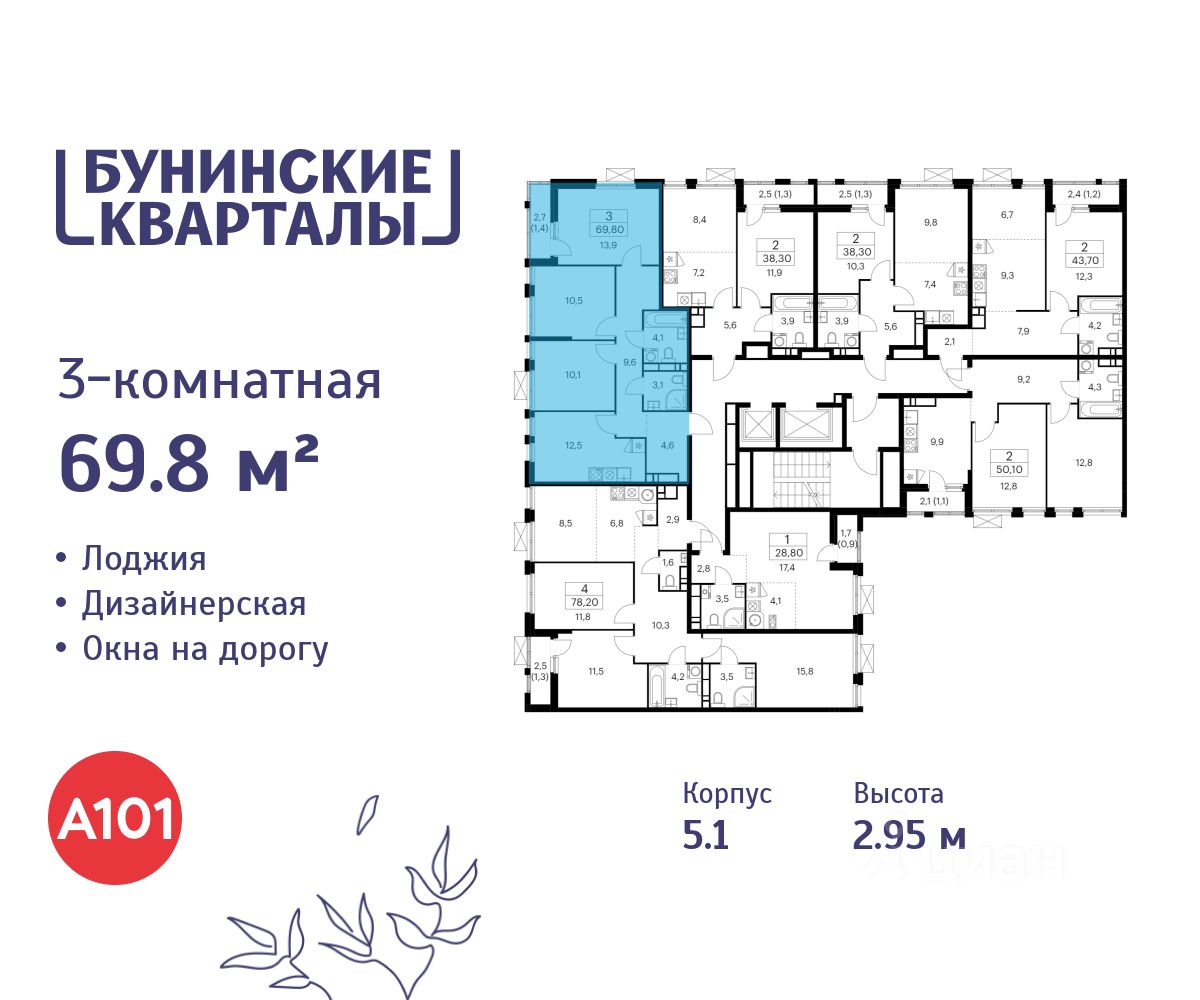 Продается трехкомнатная квартира 219 в новостройке ЖК "Бунинские кварталы" по адресу Москва, ТиНАО, Новомосковский АО, Сосенское С/П, жилой комплекс Бунинские Кварталы, 5.1, район Коммунарка, Новомосковский административный округ, Москва. Общая площадь квартиры - 69.80 кв. м., этаж 15 из 18, секция 3. Тип проекта, по которому построен дом - монолит, компания-застройщик - ООО "А101". Стоимость квартиры - 26902316 Р. Срок сдачи - 2 квартал 2026.