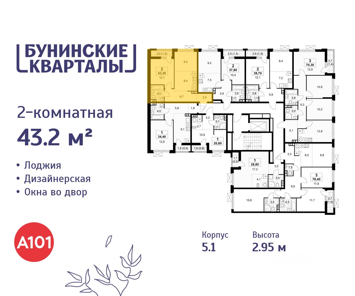 Продается двухкомнатная квартира 356 в новостройке ЖК "Бунинские кварталы" по адресу Москва, ТиНАО, Новомосковский АО, Сосенское С/П, жилой комплекс Бунинские Кварталы, 5.1, район Коммунарка, Новомосковский административный округ, Москва. Общая площадь квартиры - 43.20 кв. м., этаж 5 из 9, секция 5. Тип проекта, по которому построен дом - монолит, компания-застройщик - ООО "А101". Стоимость квартиры - 20561472 Р. Срок сдачи - 2 квартал 2026.