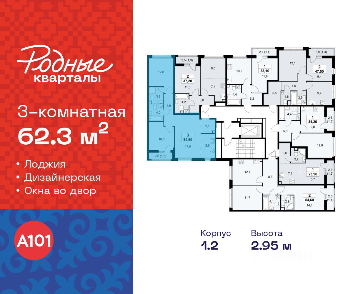 Продается трехкомнатная квартира 334 в новостройке Жилой район "Родные кварталы" по адресу Москва, ТиНАО, Новомосковский АО, Марушкинское С/П, жилой комплекс Родные Кварталы, 1.2, район Внуково, Новомосковский административный округ, Москва. Общая площадь квартиры - 62.30 кв. м., этаж 8 из 9, секция 6. Тип проекта, по которому построен дом - монолит, компания-застройщик - ООО "А101". Стоимость квартиры - 20293602 Р. Срок сдачи - 4 квартал 2026.