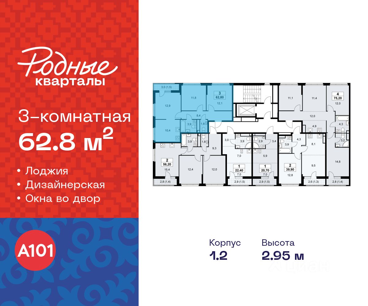 Продается трехкомнатная квартира 117 в новостройке Жилой район "Родные кварталы" по адресу Москва, ТиНАО, Новомосковский АО, Марушкинское С/П, жилой комплекс Родные Кварталы, 1.2, район Внуково, Новомосковский административный округ, Москва. Общая площадь квартиры - 62.80 кв. м., этаж 4 из 9, секция 2. Тип проекта, по которому построен дом - монолит, компания-застройщик - ООО "А101". Стоимость квартиры - 21019788 Р. Срок сдачи - 4 квартал 2026.