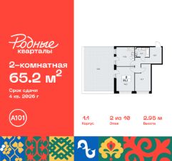 Продается двухкомнатная квартира 5 в новостройке Жилой район "Родные кварталы" по адресу Москва, ТиНАО, Новомосковский АО, Марушкинское С/П, жилой комплекс Родные Кварталы, 1.1, район Внуково, Новомосковский административный округ, Москва. Общая площадь квартиры - 65.20 кв. м., этаж 2 из 10, секция 1. Тип проекта, по которому построен дом - монолит, компания-застройщик - ООО "А101". Стоимость квартиры - 18642806 Р. Срок сдачи - 4 квартал 2026.