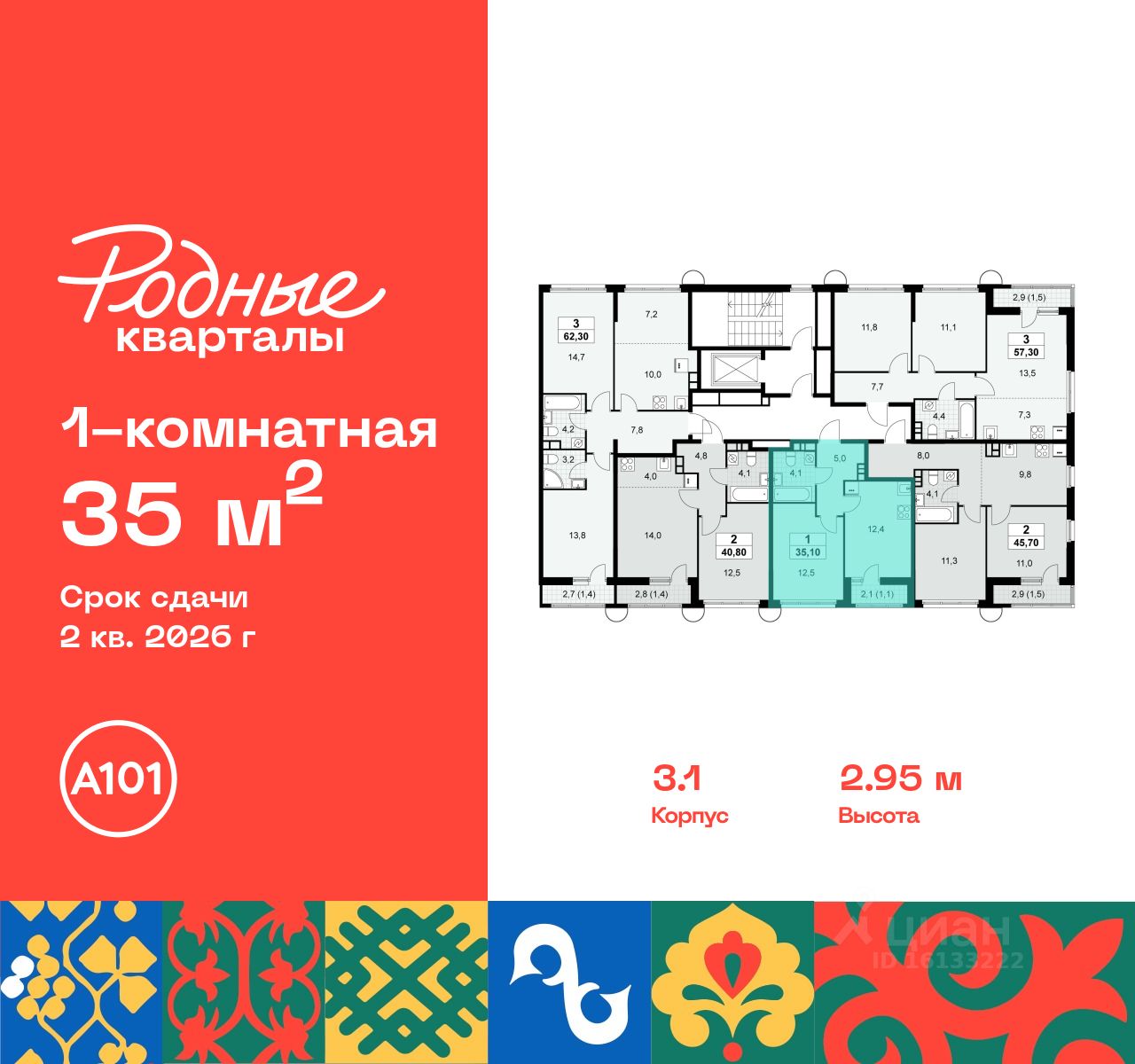 Продается однокомнатная квартира 43 в новостройке Жилой район "Родные кварталы" по адресу Москва, ТиНАО, Новомосковский АО, Марушкинское С/П, жилой комплекс Родные Кварталы, 3.1, район Внуково, Новомосковский административный округ, Москва. Общая площадь квартиры - 35.00 кв. м., этаж 10 из 10, секция 1. Тип проекта, по которому построен дом - монолит, компания-застройщик - ООО "А101". Стоимость квартиры - 11452700 Р. Срок сдачи - 2 квартал 2026.