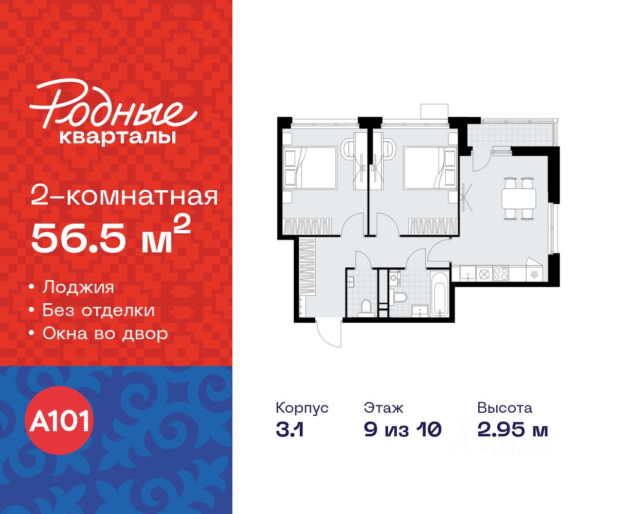 Продается двухкомнатная квартира 182 в новостройке Жилой район "Родные кварталы" по адресу Москва, ТиНАО, Новомосковский АО, Марушкинское С/П, жилой комплекс Родные Кварталы, 3.1, район Внуково, Новомосковский административный округ, Москва. Общая площадь квартиры - 56.50 кв. м., этаж 9 из 10, секция 4. Тип проекта, по которому построен дом - монолит, компания-застройщик - ООО "А101". Стоимость квартиры - 14727290 Р. Срок сдачи - 2 квартал 2026.