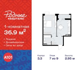 Продается однокомнатная квартира 458 в новостройке Жилой район "Родные кварталы" по адресу Москва, ТиНАО, Новомосковский АО, Марушкинское С/П, жилой комплекс Родные Кварталы, 3.3, район Внуково, Новомосковский административный округ, Москва. Общая площадь квартиры - 36.90 кв. м., этаж 7 из 9, секция 10. Тип проекта, по которому построен дом - монолит, компания-застройщик - ООО "А101". Стоимость квартиры - 13261860 Р. Срок сдачи - 2 квартал 2026.