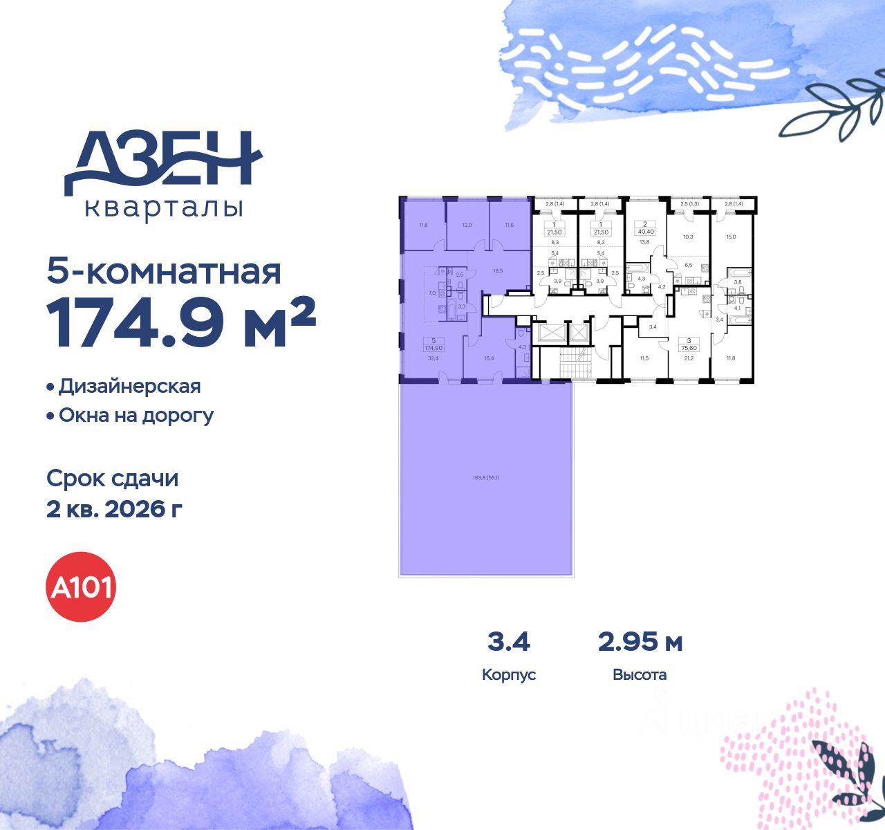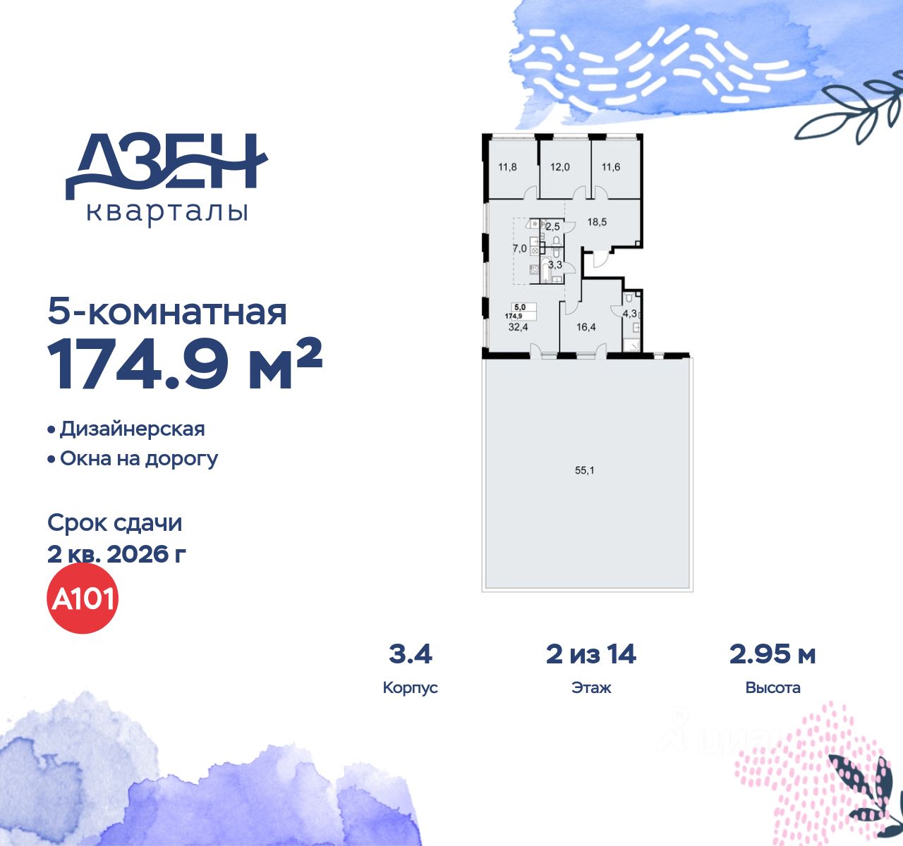 Продается многокомнатная квартира 718 в новостройке ЖК "Дзен-кварталы" по адресу Москва, ТиНАО, Новомосковский АО, Сосенское С/П, жилой комплекс Дзен-кварталы, 3.4, район Коммунарка, Новомосковский административный округ, Москва. Общая площадь квартиры - 174.90 кв. м., этаж 2 из 14, секция 9. Тип проекта, по которому построен дом - монолит, компания-застройщик - ООО "А101". Стоимость квартиры - 47939396 Р.