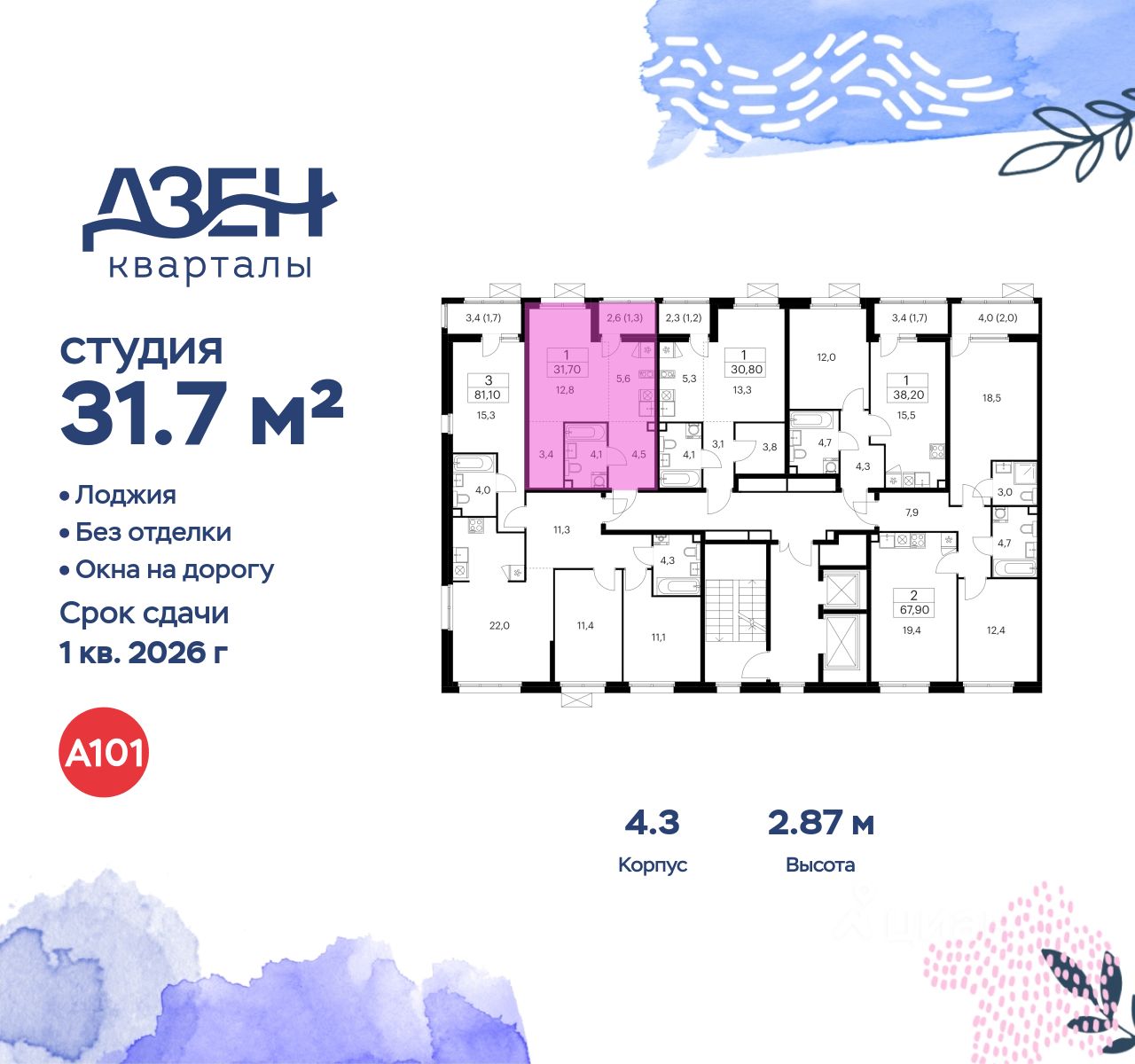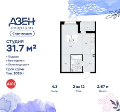 Продается студия 269 в новостройке ЖК "Дзен-кварталы" по адресу Москва, ТиНАО, Новомосковский АО, Сосенское С/П, жилой комплекс Дзен-кварталы, 4.3, район Коммунарка, Новомосковский административный округ, Москва. Общая площадь квартиры - 31.70 кв. м., этаж 2 из 12, секция 5. Тип проекта, по которому построен дом - монолит, компания-застройщик - ООО "А101". Стоимость квартиры - 14916752 Р. Срок сдачи - 1 квартал 2026.