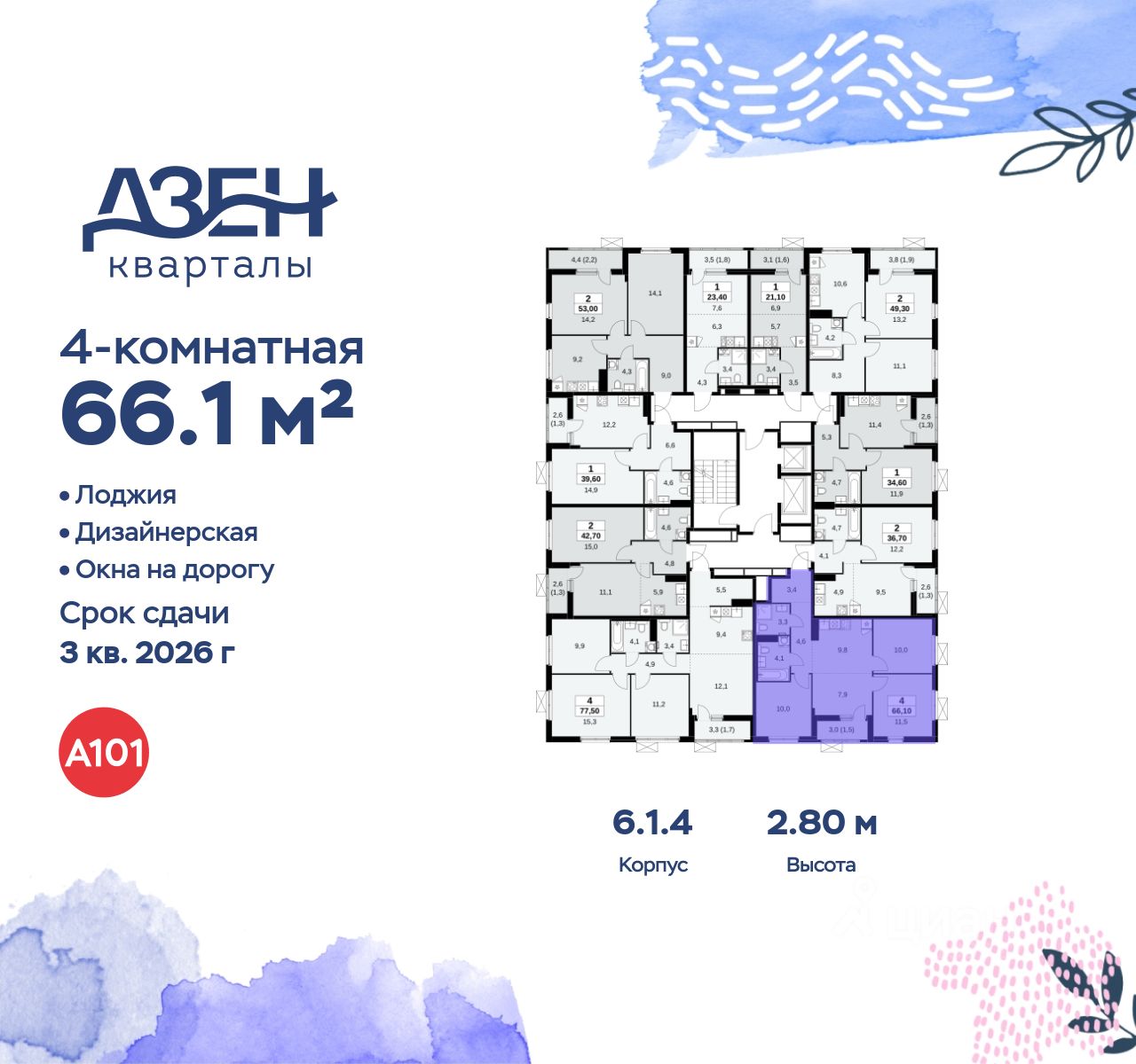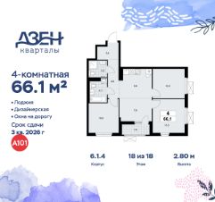 Продается четырехкомнатная квартира 882 в новостройке ЖК "Дзен-кварталы" по адресу Москва, ТиНАО, Новомосковский АО, Сосенское С/П, жилой комплекс Дзен-кварталы, 6.1.4, район Коммунарка, Новомосковский административный округ, Москва. Общая площадь квартиры - 66.10 кв. м., этаж 18 из 18, секция 12. Тип проекта, по которому построен дом - монолит, компания-застройщик - ООО "А101". Стоимость квартиры - 27058035 Р. Срок сдачи - 3 квартал 2026.