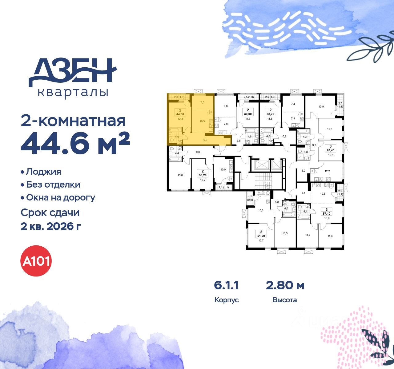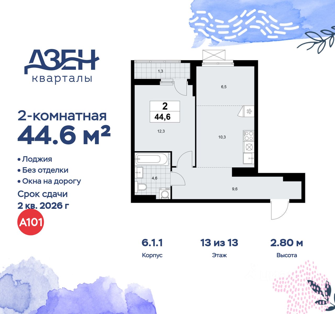 Продается двухкомнатная квартира 265 в новостройке ЖК "Дзен-кварталы" по адресу Москва, ТиНАО, Новомосковский АО, Сосенское С/П, жилой комплекс Дзен-кварталы, 6.1.1, район Коммунарка, Новомосковский административный округ, Москва. Общая площадь квартиры - 44.60 кв. м., этаж 13 из 13, секция 5. Тип проекта, по которому построен дом - монолит, компания-застройщик - ООО "А101". Стоимость квартиры - 20117276 Р. Срок сдачи - 2 квартал 2026.