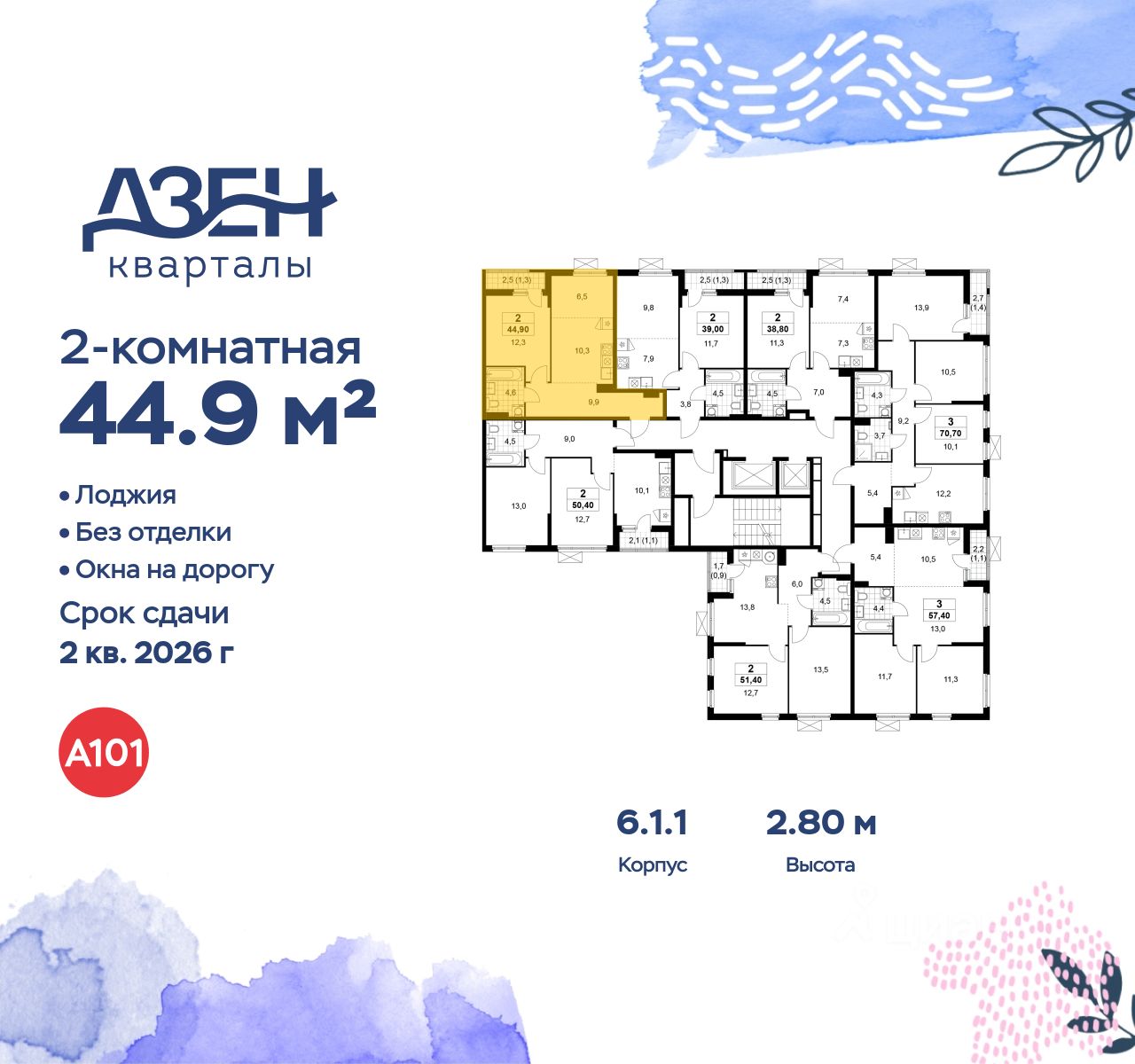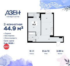 Продается двухкомнатная квартира 230 в новостройке ЖК "Дзен-кварталы" по адресу Москва, ТиНАО, Новомосковский АО, Сосенское С/П, жилой комплекс Дзен-кварталы, 6.1.1, район Коммунарка, Новомосковский административный округ, Москва. Общая площадь квартиры - 44.90 кв. м., этаж 8 из 13, секция 5. Тип проекта, по которому построен дом - монолит, компания-застройщик - ООО "А101". Стоимость квартиры - 20013277 Р. Срок сдачи - 2 квартал 2026.